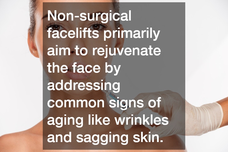 Non-surgical facelifts primarily aim to rejuvenate the face by addressing common signs of aging like wrinkles and sagging skin. These procedures often use minimally invasive techniques such as dermal fillers, botox, and laser treatments. By revitalizing the skin and diminishing lines, individuals can achieve a youthful look without undergoing invasive surgery.